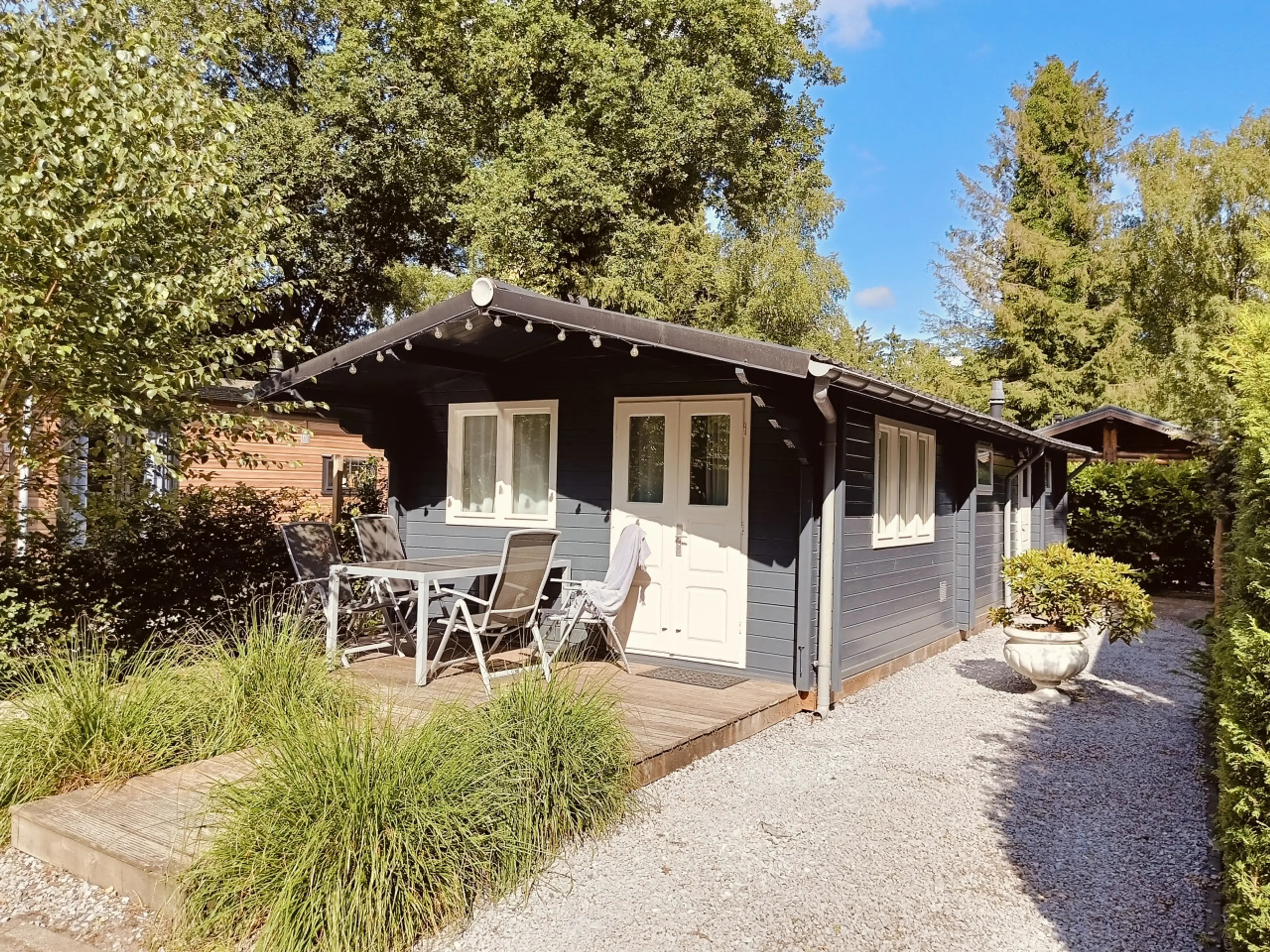 EY98 · Knus ingerichte blokhut op rustig park.